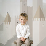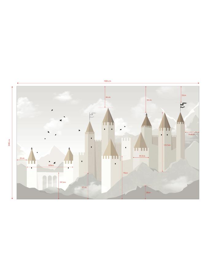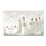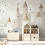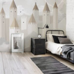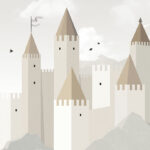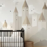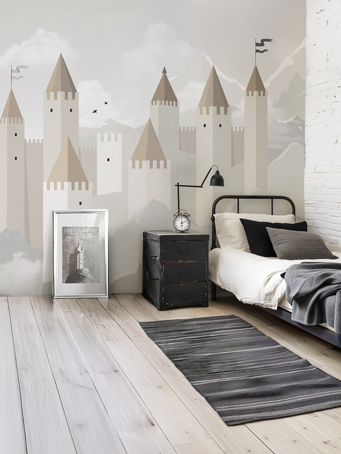El mural Arundel ofrece una interpretación contemporánea del castillo, con líneas geométricas limpias, paleta mineral y espíritu moderno que transforma la imaginación medieval en un decorado inspirador y de diseño.