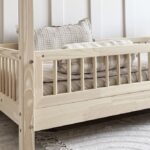 Incluye barrera con barrotes redondeados en los 4 lados de las cama. La barrera central es desmontable y se puede poner el cualquier lado (izquierda – derecha). Cubre 1/2 del frontal