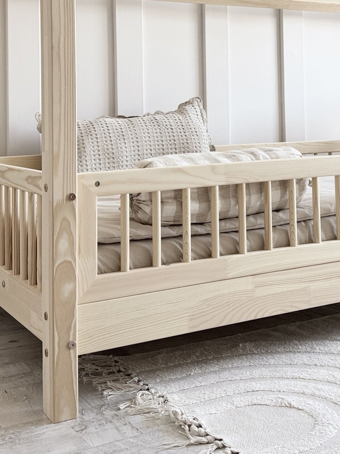 La cama está hecha de madera de pino seleccionada de clase 1.