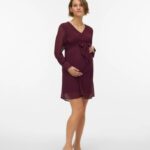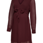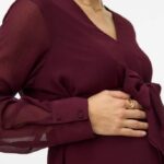 Elegante vestido premamá de gasa, con mangas semi transparentes y detalle de lazada. Perfecto para una cena o cualquier ocasión especial.