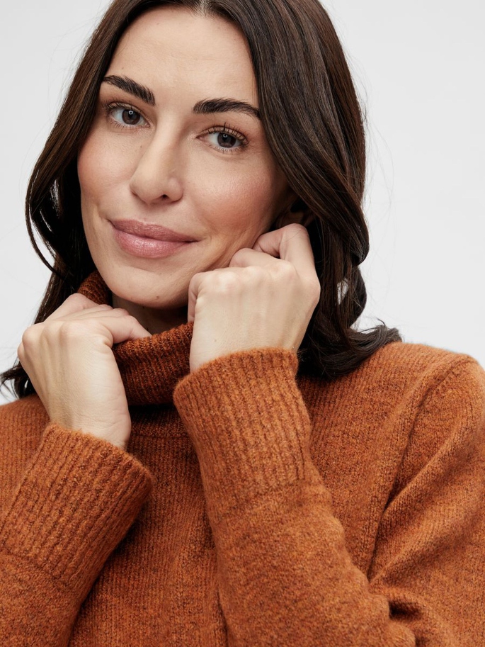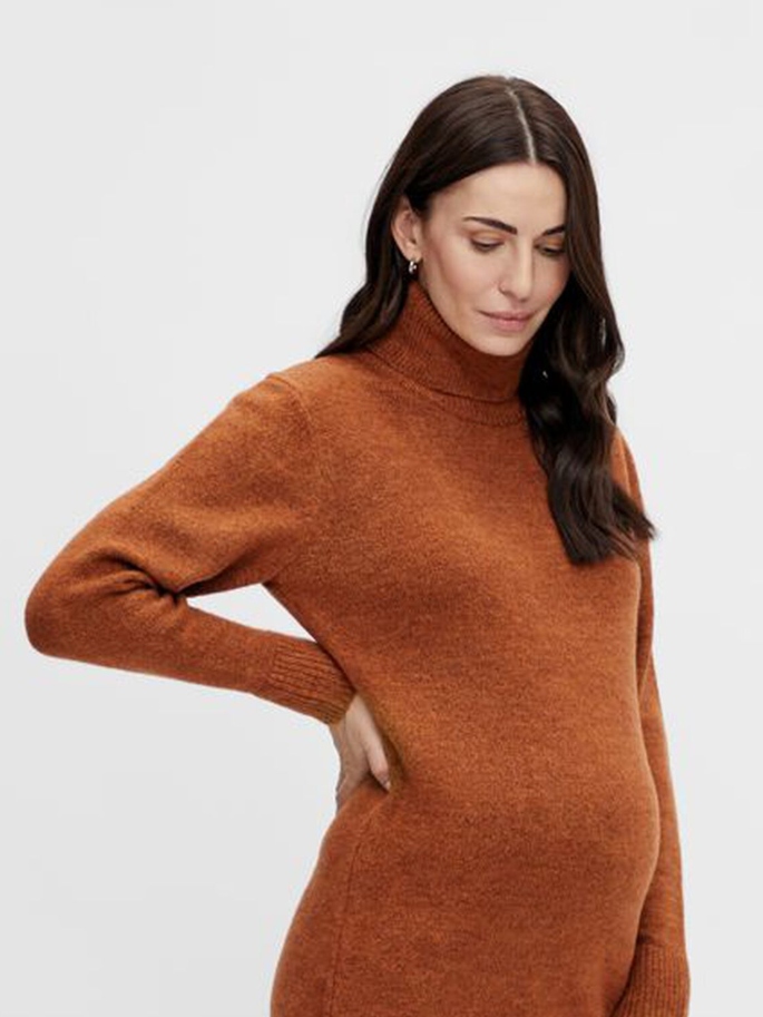 Vestido premamá de punto suave y calentito, en un bonito color terracota.